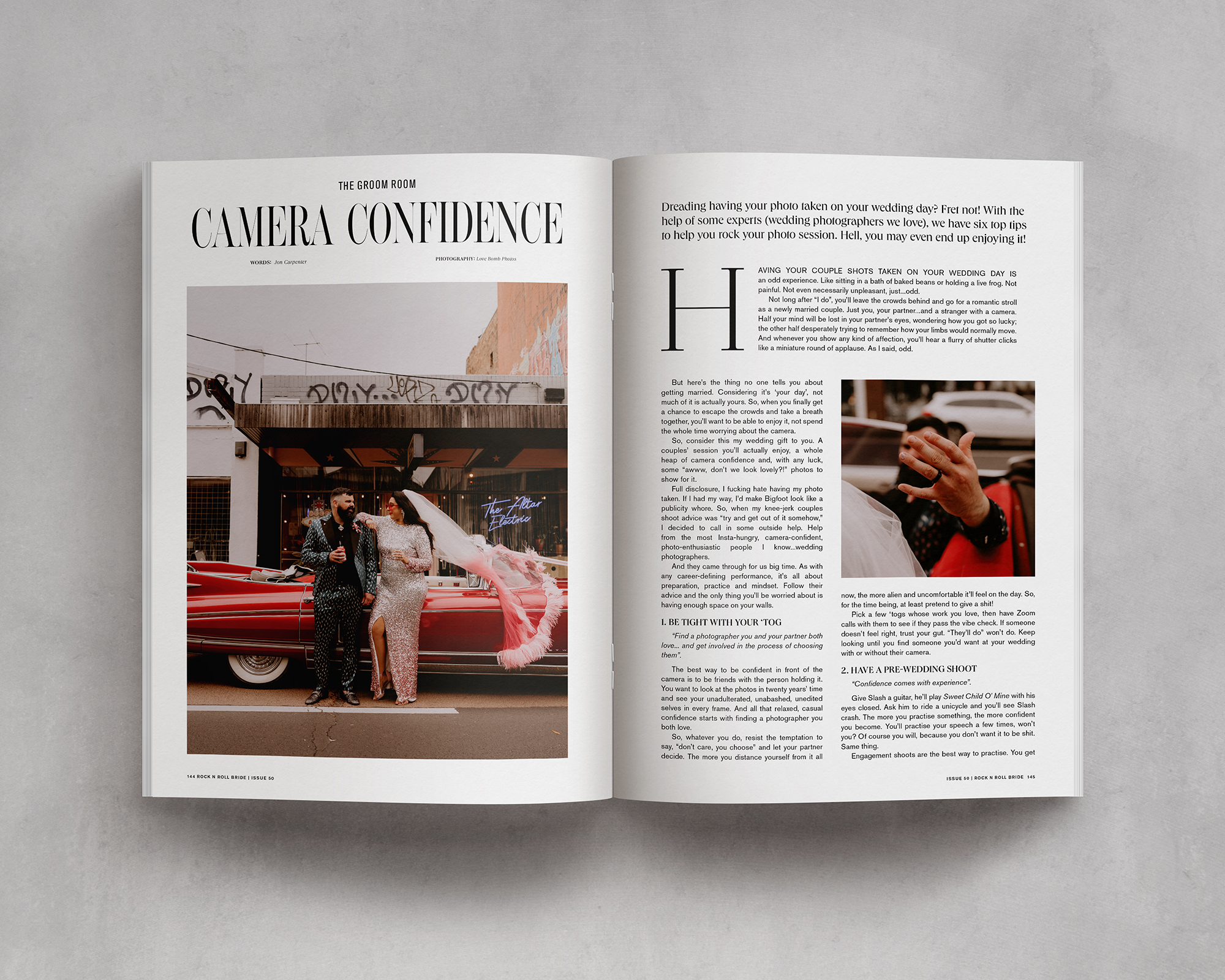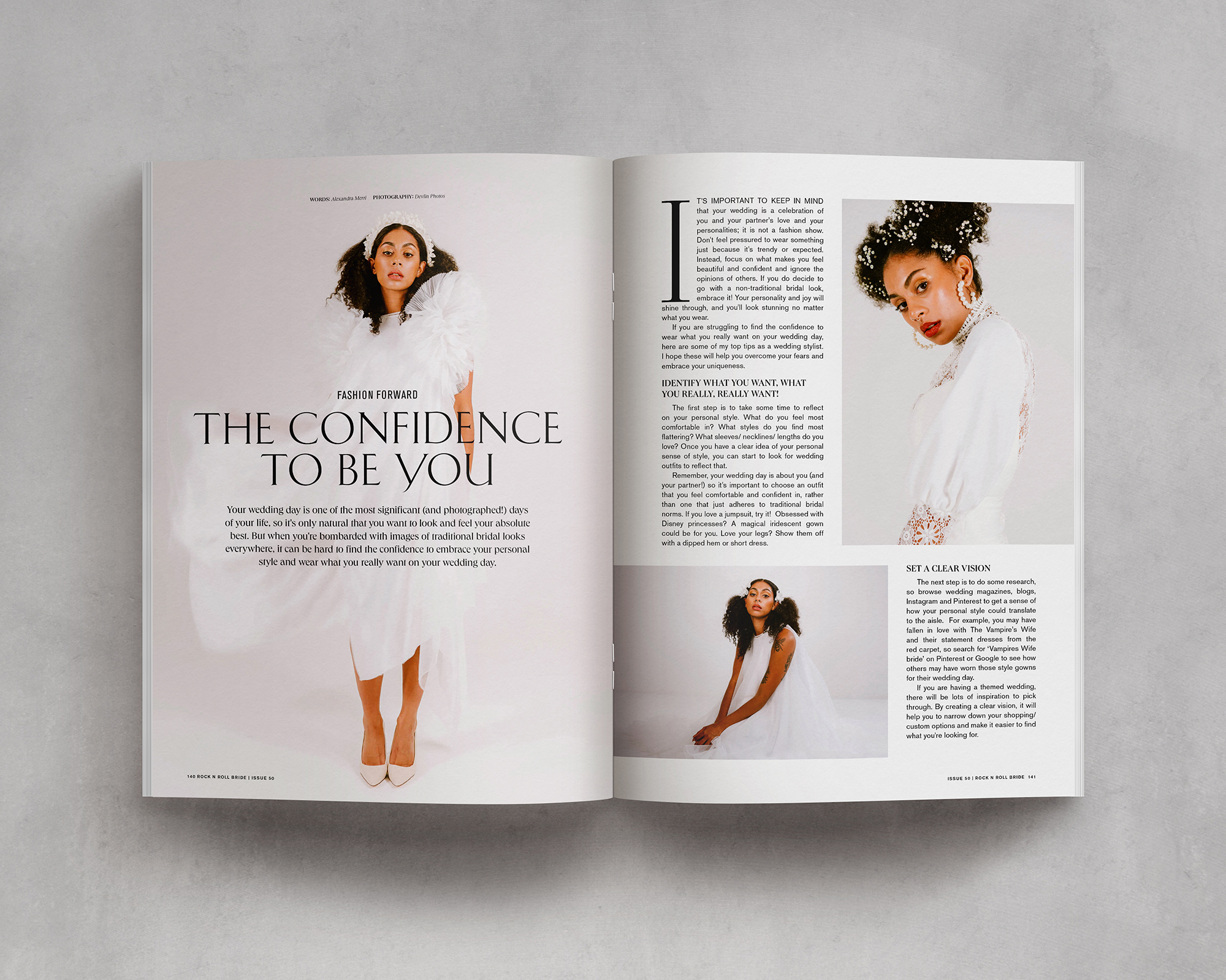 When coming up with the theme for such a landmark edition there was only one thing I wanted to do: an issue all about confidence. The confidence to be yourself, the confidence to stand up for your beliefs, and the confidence to ignore the naysayers. That's pretty much the foundation of our brand and why I started Rock n Roll Bride in the first place, so it felt like a really full circle moment to create an entire magazine around this topic.