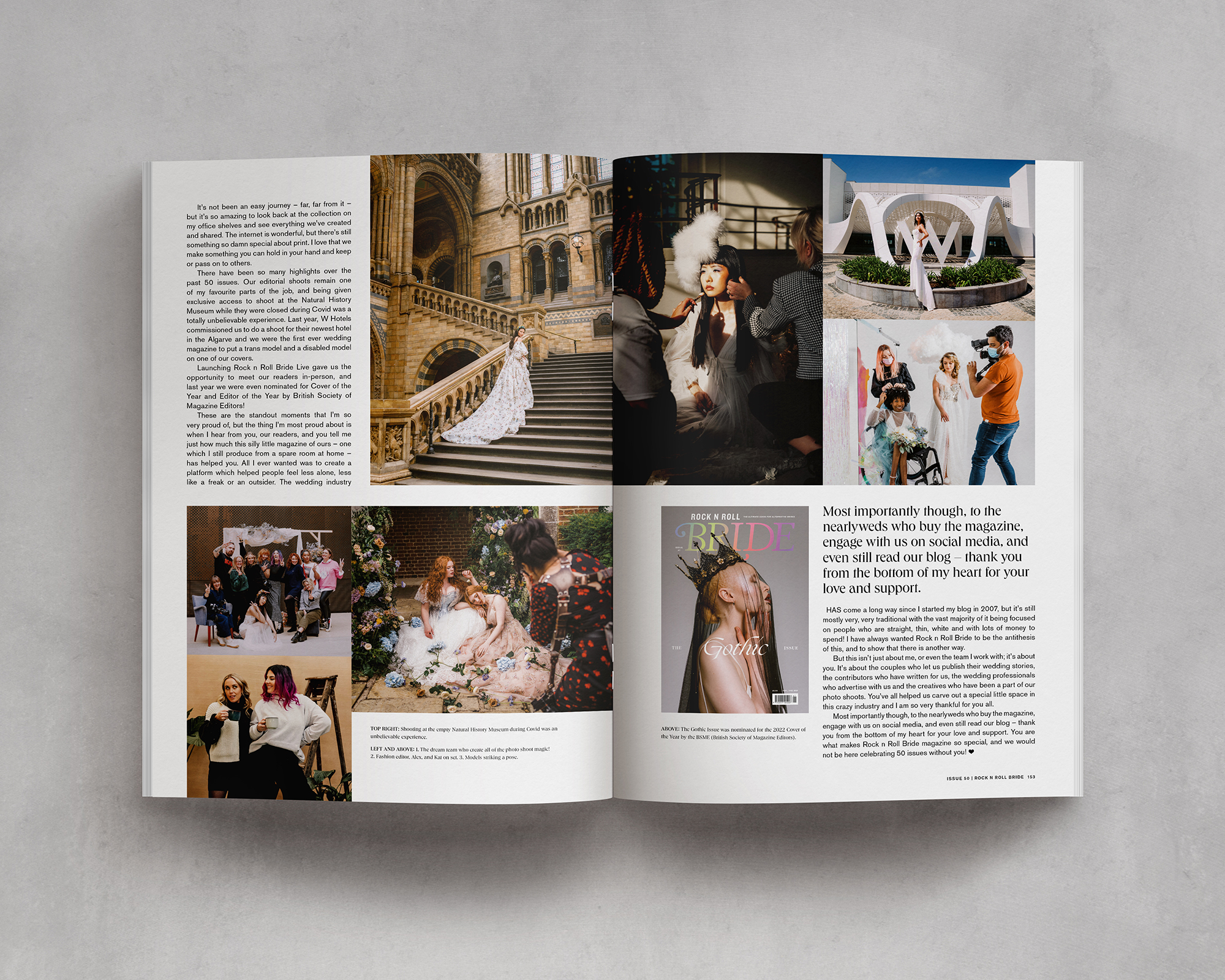 If you'd have told me when we decided to create a 'magazine' to give away at a wedding fair in 2011, that we'd still be here 50 issues later, not only would I have not believed you, I probably would have had a panic attack. But it's not an anxiety dream, its very much my reality and I can't quite believe issue 50 (!!) of Rock n Roll Bride magazine is now available!